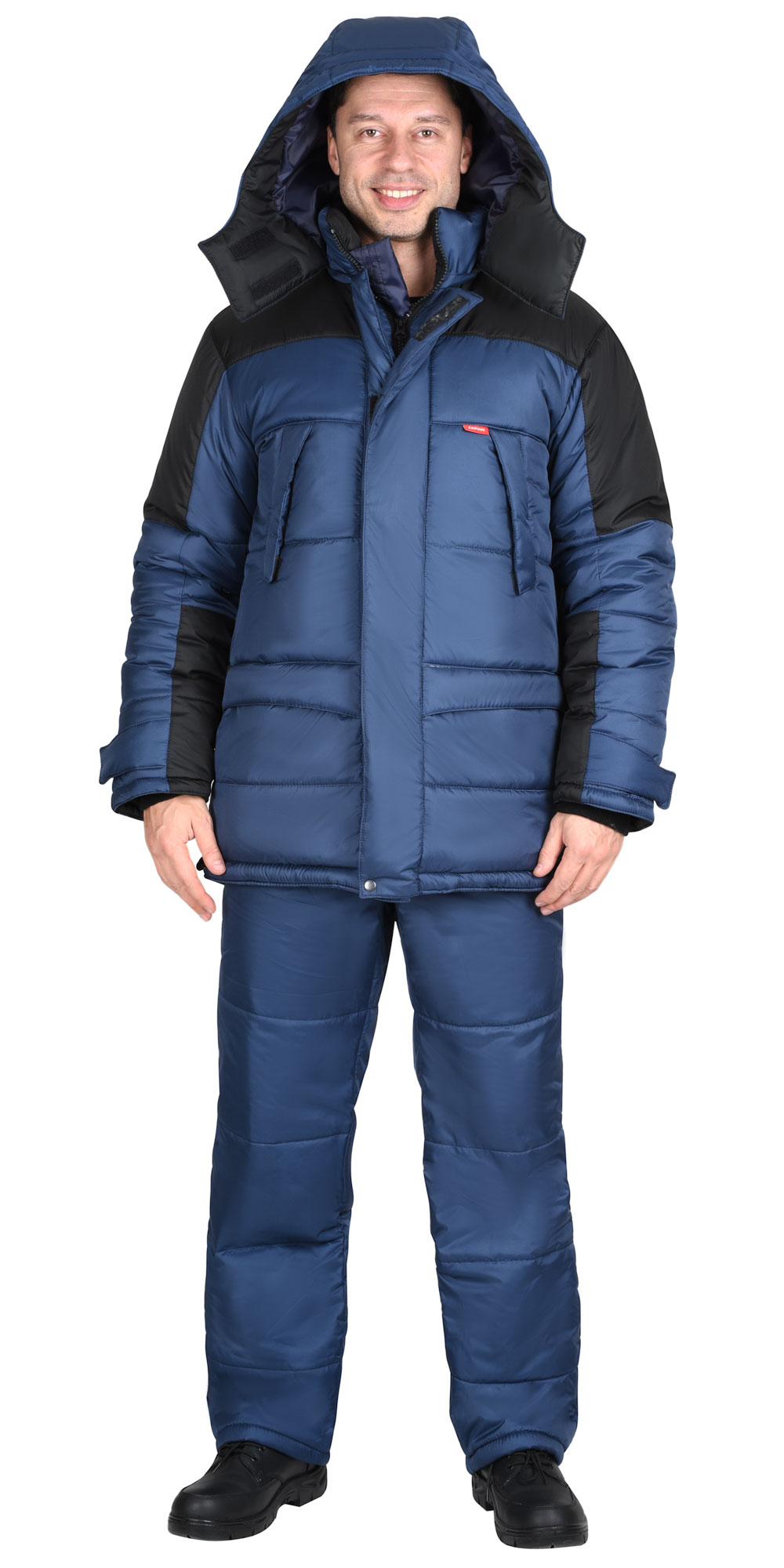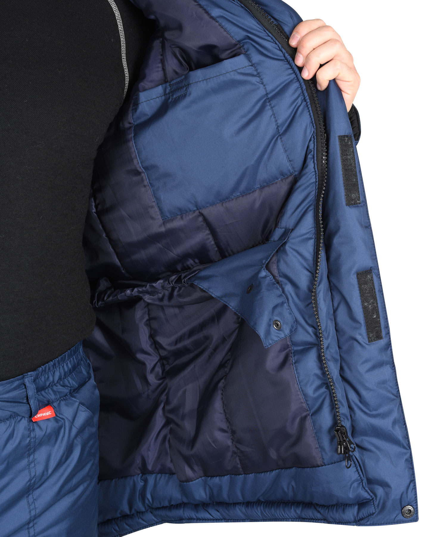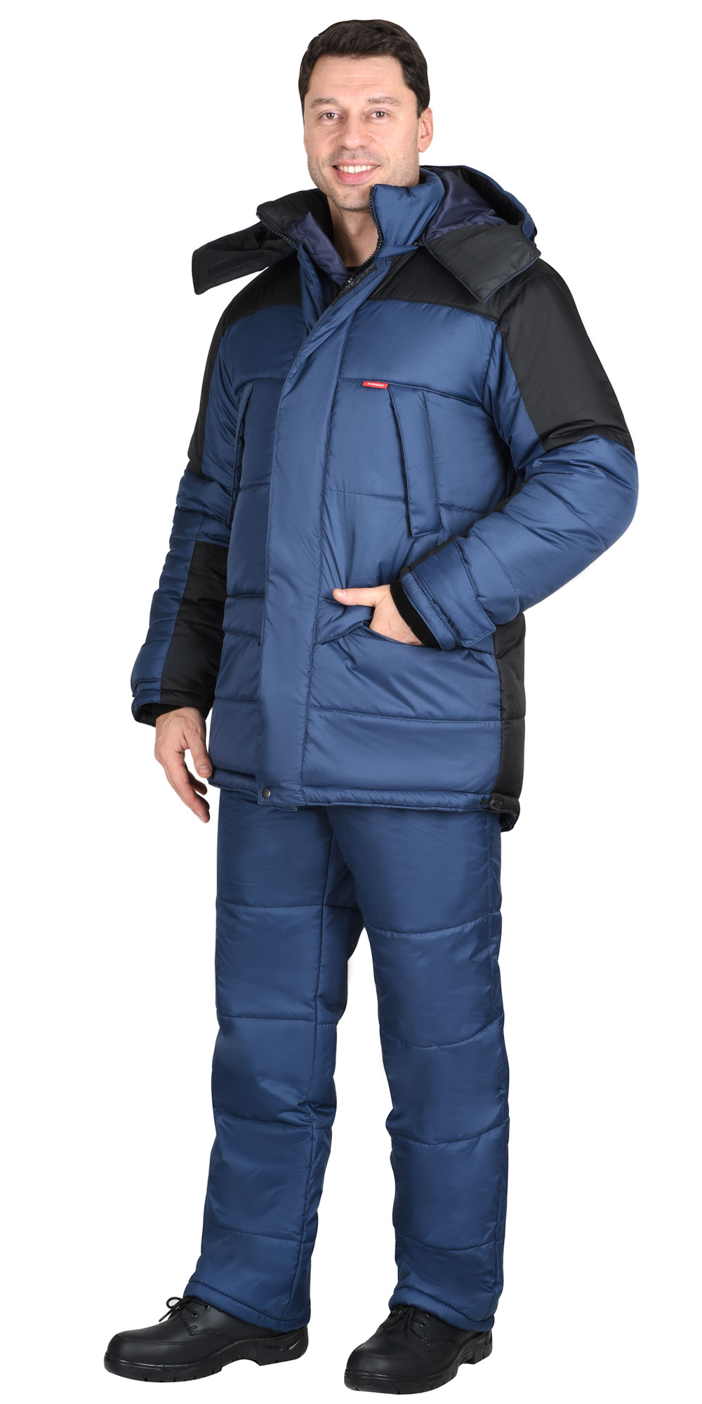 Düz gödəkçə; rəflərin, arxa və qolların hissələrinə izolyasiya qatını tikmək üçün üfüqi xətlərlə; dayaq yaxası”; başlıq bağlamaq üçün boyun xətti boyunca fermuar lenti ilə, plaketin altında gizlənmişdir; ikitərəfli fermuarlı mərkəzi yan bərkidici və 9,5 sm uzunluğunda 4 ədəd toxuculuq Velcro bərkidici ilə bərkidilmiş iki xarici külək keçirməyən qapaq ilə kəmərin altındakı bir düymə ilə; sağ tərəfdə daxili külək keçirməyən qapaq ilə (yaxalığın yuxarı kənarından pencəyin aşağısına qədər), parça astarlı.